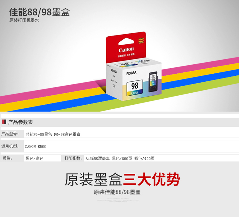 佳能 PG-88 黑色墨盒 适用于PIXMA E500
