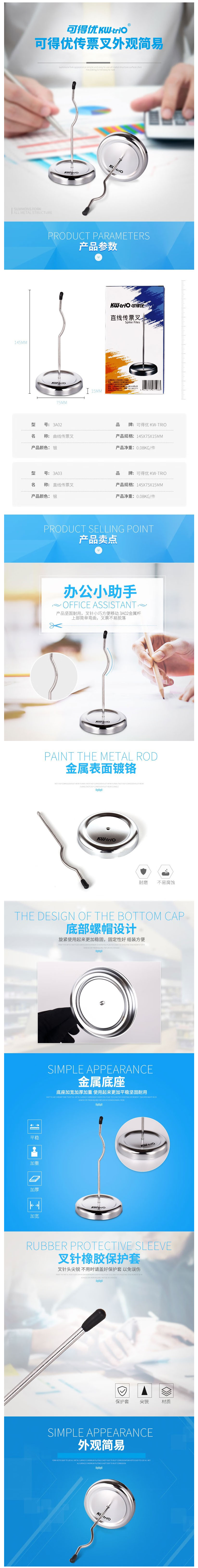 可得优 票叉 3A02 145*75*15mm 银色 产品坚固耐用,又针小巧方便移动3A02金属杆上部简单弯曲,又票不易脱落。底座加宽加厚加重 使用起来更加平稳坚固耐用。